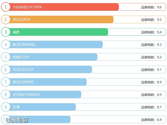 這是來(lái)自排行榜123網(wǎng)的截圖,它依托全網(wǎng)大數(shù)據(jù),根據(jù)品牌評(píng)價(jià)以及銷量評(píng)選出了2022年電儀表十大品牌排行榜,前十名分別是力辰科技/LICHEN、世達(dá)/SATA、威勝、林洋LINYANG、科陸CLOU、華立HOLLEY、,/SMART、史丹利/STANLEY、許繼、炬華 。如果您正在查找電儀表什么牌子好?那么本電儀表十大品牌榜單可供您作為選購(gòu)參考,我們致力于用Z真實(shí)的用戶數(shù)據(jù)推薦口碑Z好的電儀表品牌,讓您選得放心。(榜單每月更新一次)