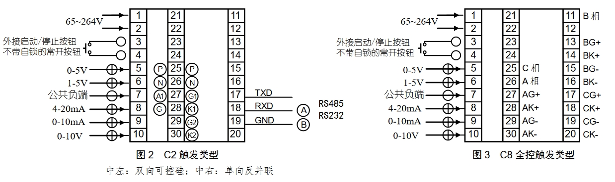 3. C3、C5、C7 型觸發(fā)有極性。自動(dòng)適應(yīng)相序,只要接線無誤即可正常工作,無須理相;
