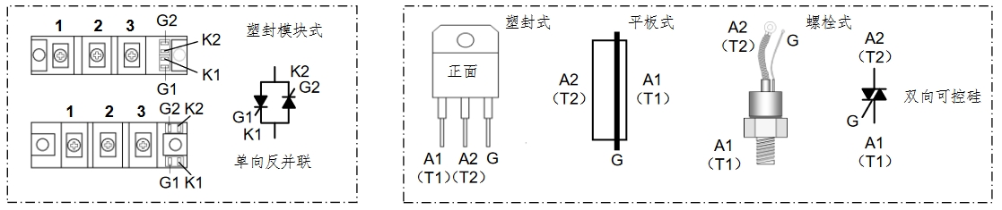 6. 常用雙向可控硅、功率模塊引腳排列: