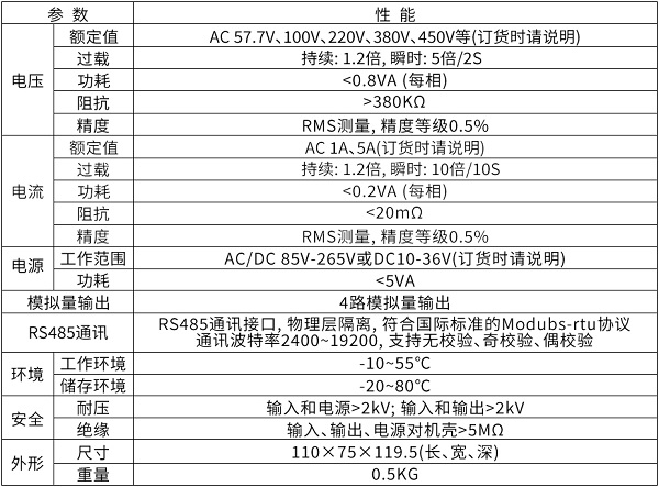 模擬量變送輸出可選:DC0~20mA、DC4~20mA、DC0~5V、DC0~10V等。模擬量變送輸出與輸入信號隔離,成線性對應關系,廣泛用于PLC、DCS等數據采集。精度0.5%;電流輸出時,負載電阻<500Ω、電壓輸出時,負載電阻>100KΩ。
