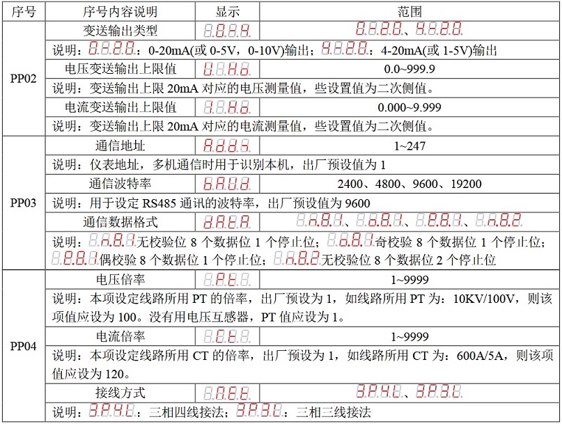 5.3.1 儀表運行參數設置(長按“SET”鍵3秒進入)