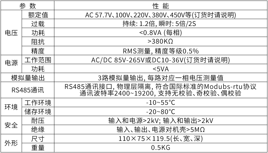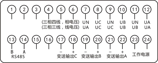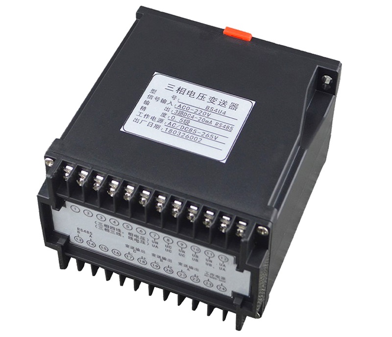 模擬量變送輸出可選:DC0~20mA、DC4~20mA、DC0~5V、DC0~10V等。模擬量變送輸出與輸入信號隔離,成線性對應關系,每路測量電壓對應一路模擬量變送輸出,廣泛用于PLC、DCS等數據采集。精度0.5%;電流輸出時,負載電阻<500Ω、電壓輸出時,負載電阻>100KΩ。