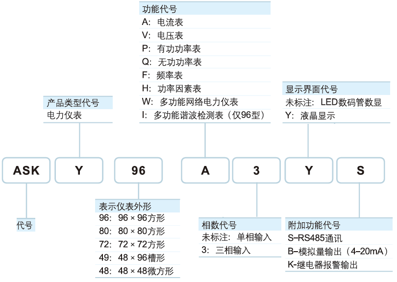 ASKY48A智能單相電流表是一種具有可編程測量、顯示、數(shù)字通訊和電能脈沖變送輸出等功能的多功能電力儀表??蓮V泛應用變電站自動化,配電自動化智能建筑、企業(yè)內(nèi)部的電能測量、管理、考核。測量精度為0.5級、實現(xiàn)LED現(xiàn)場顯示和遠程RS-485數(shù)字通訊。