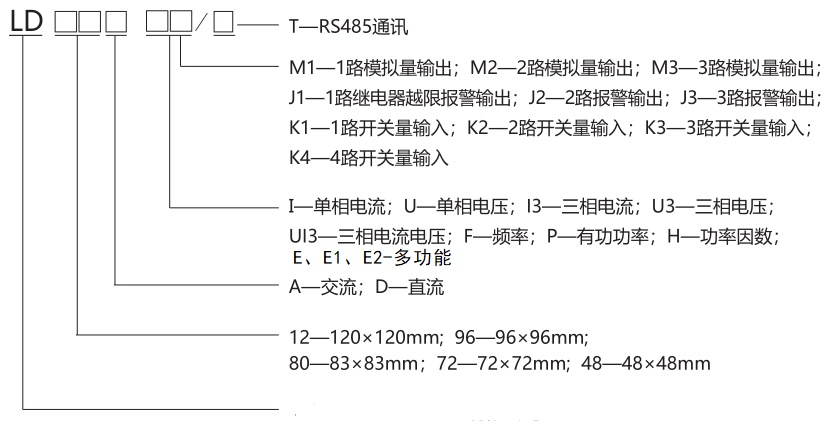LD72AI/M1單相數顯電流表是一種具有可編程測量、顯示、數字通訊和電能脈沖變送輸出等功能的多功能電力儀表。可廣泛應用變電站自動化,配電自動化智能建筑、企業內部的電能測量、管理、考核。測量精度為0.5級、實現LED現場顯示和遠程RS-485數字通訊。