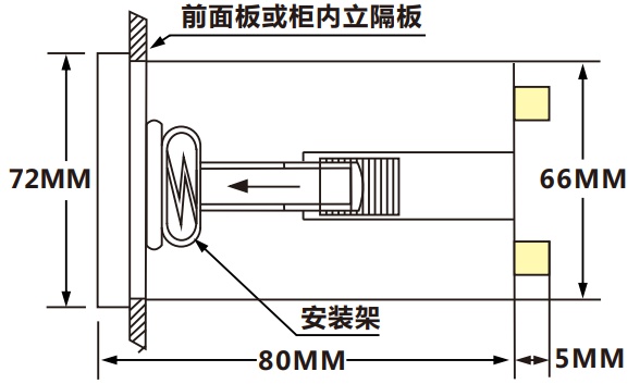 根據儀表型號在上表中選擇對應的安裝開孔尺寸,在安裝屏上開一個孔,將儀表嵌入孔內,兩個夾持件放入儀表殼體的夾持槽內,用手推緊即可。