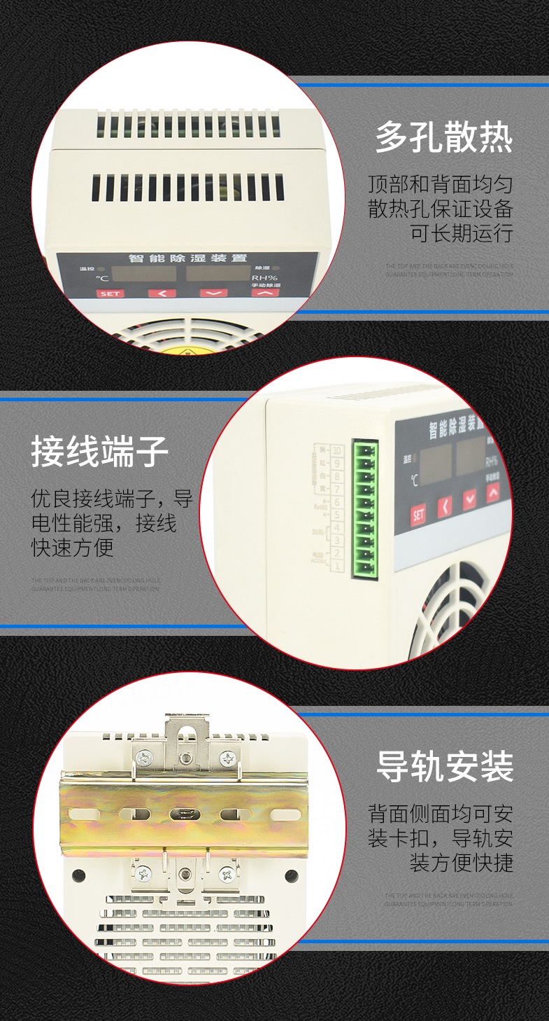 KBT37-30智能型除濕裝置是采用半導(dǎo)體制冷除濕方式,主動將密閉空間的潮濕空氣在風(fēng)扇的作用下吸入除濕風(fēng)道,空氣中的水汽經(jīng)過半導(dǎo)體制冷機構(gòu)后冷凝成水,再通過導(dǎo)水管排出柜體,可以達到很好的除濕效果。