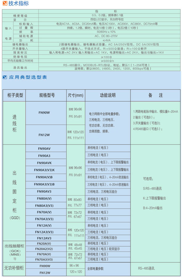 FN90A、FN90A3、FN90V3、FN70A3系列測控儀表選型