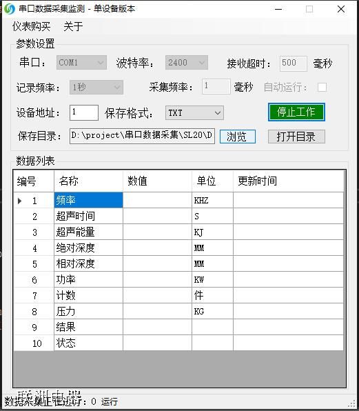“串口數據采集”軟件單設備版本截圖如下: